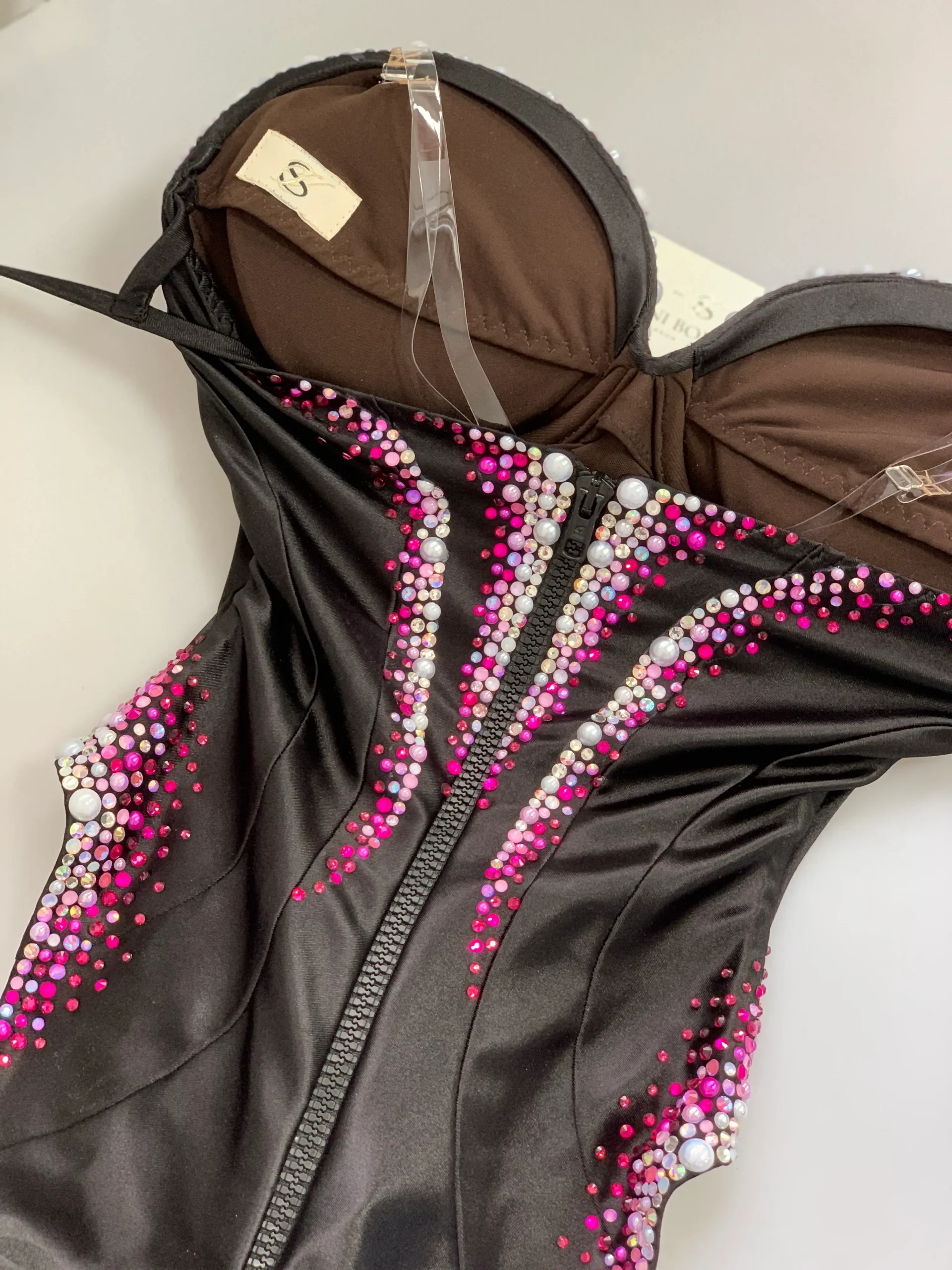 Black satin base.
