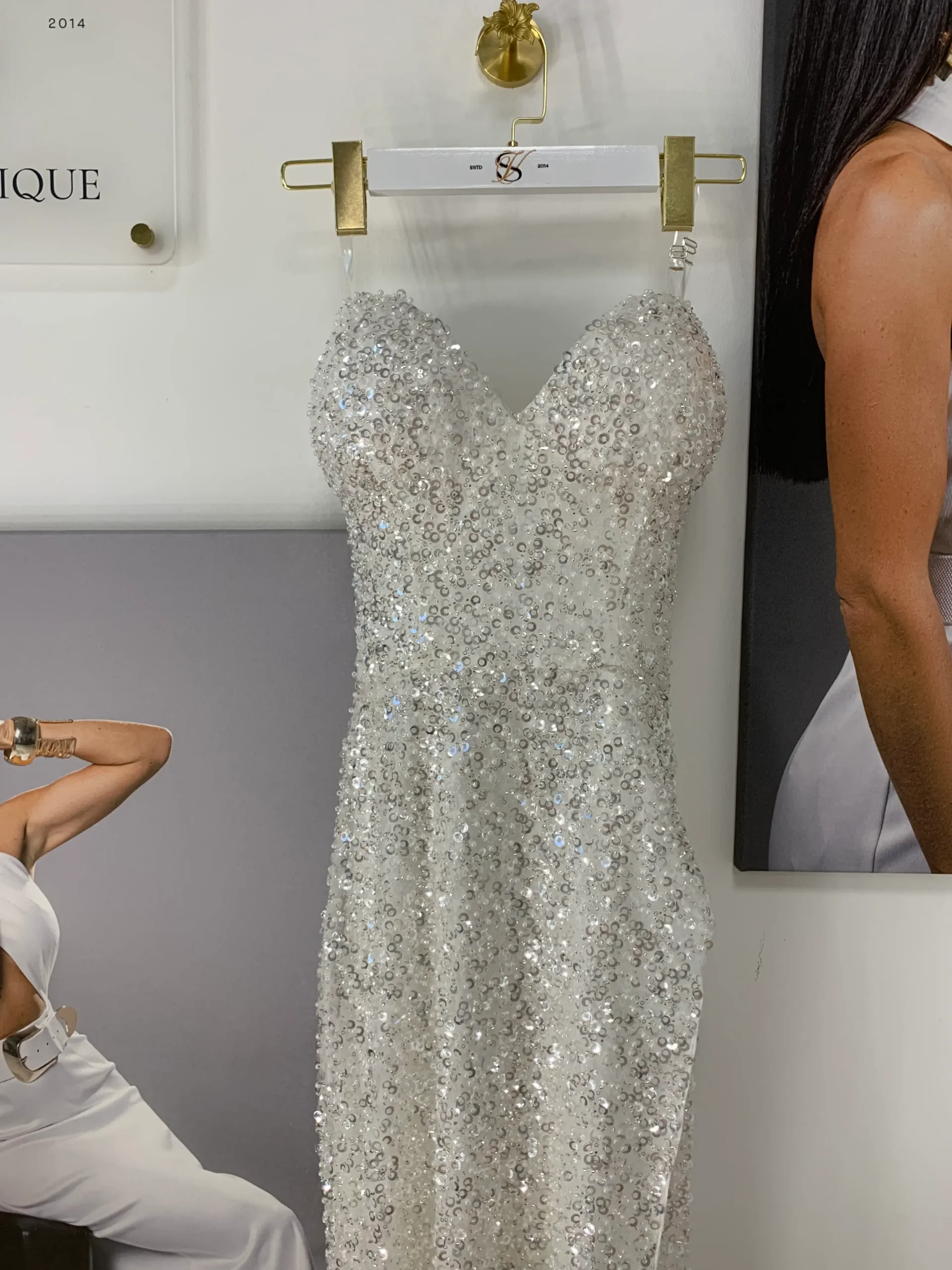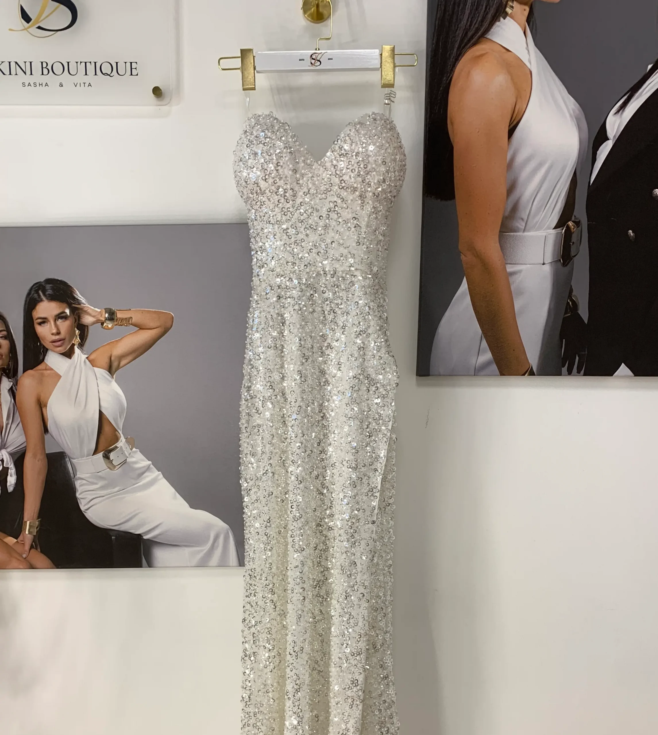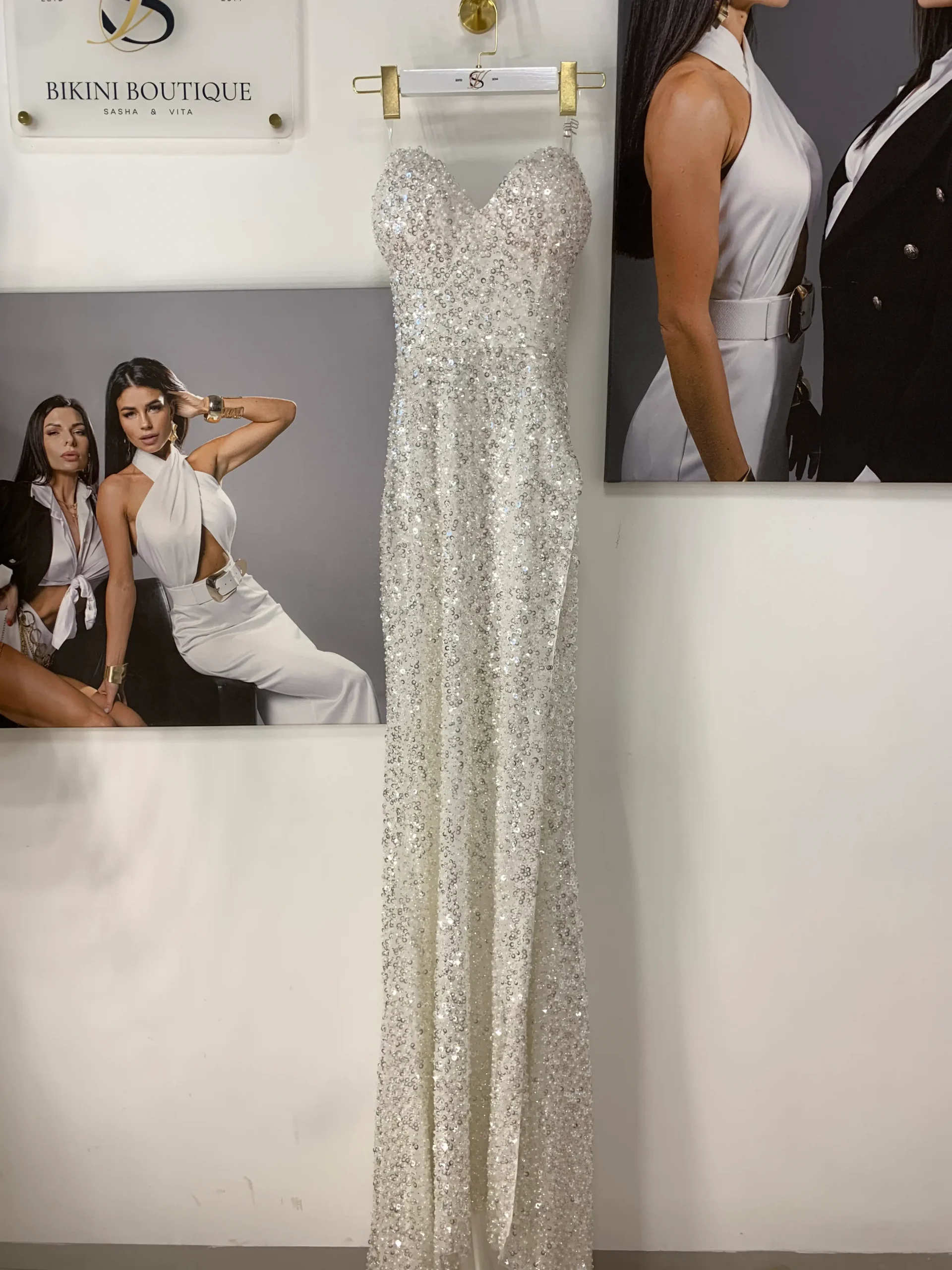 The modern look, that`s not only perfect for girl`s special day, but also for an evening event. The flowing fabric creates weightless effect, sparkle turns dress into a true work of art!
