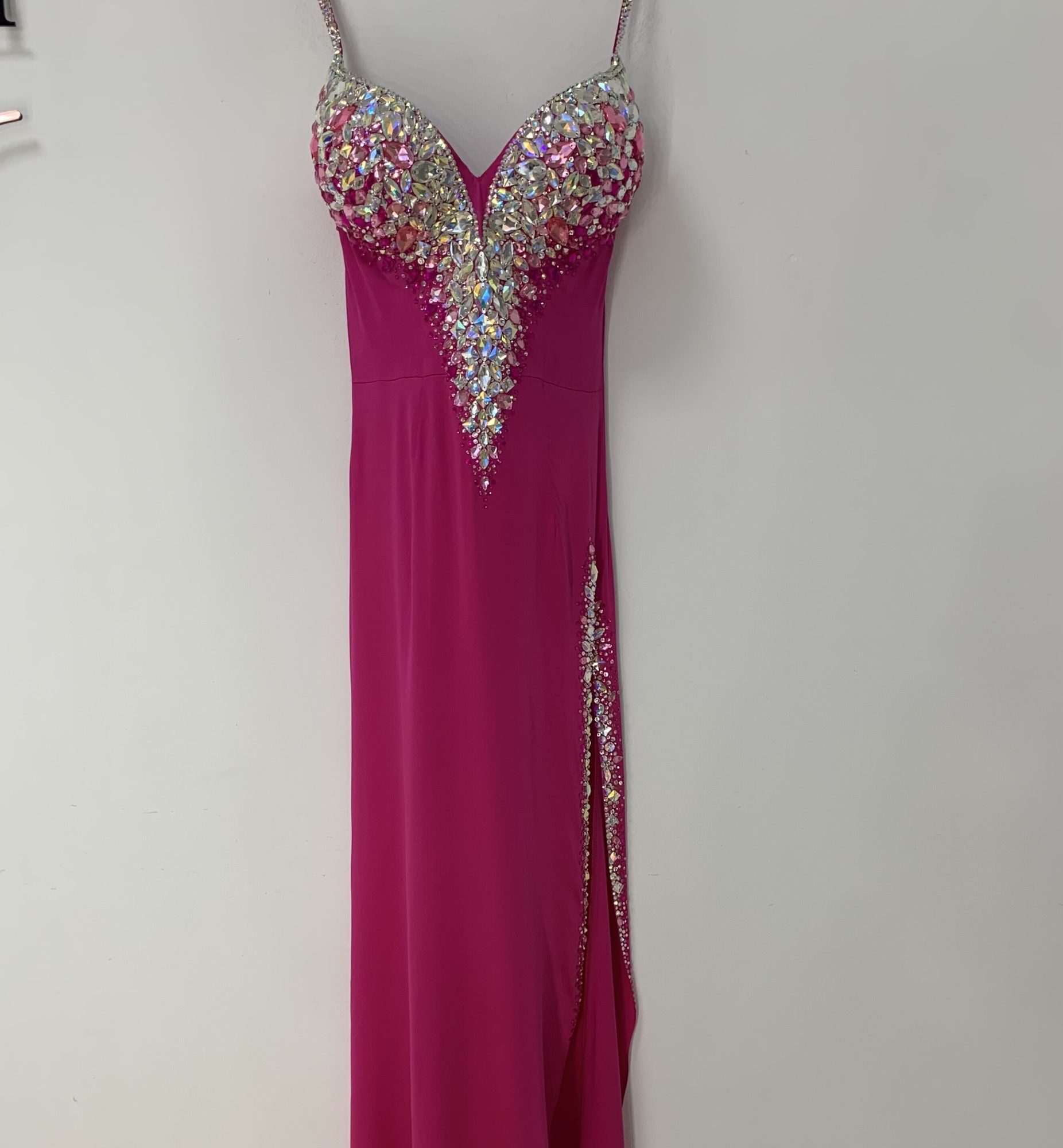 A fabulous silk dress with a train perfectly emphasizes a feminine figure. Delicate airy material and graceful decoration makes you the standart of elegance on stage!