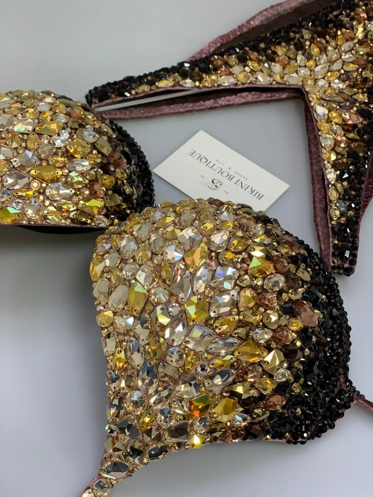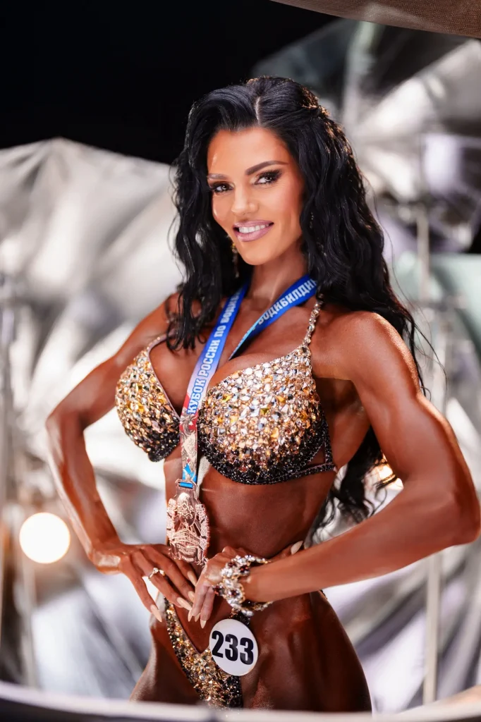 A range of rich golden shades and delicate powdery base create fashionable stylish desigh for multiple champion Galina Osiptseva. Gold always attracts attention, and yet in the form of large stones it looks like expensive jewelry!