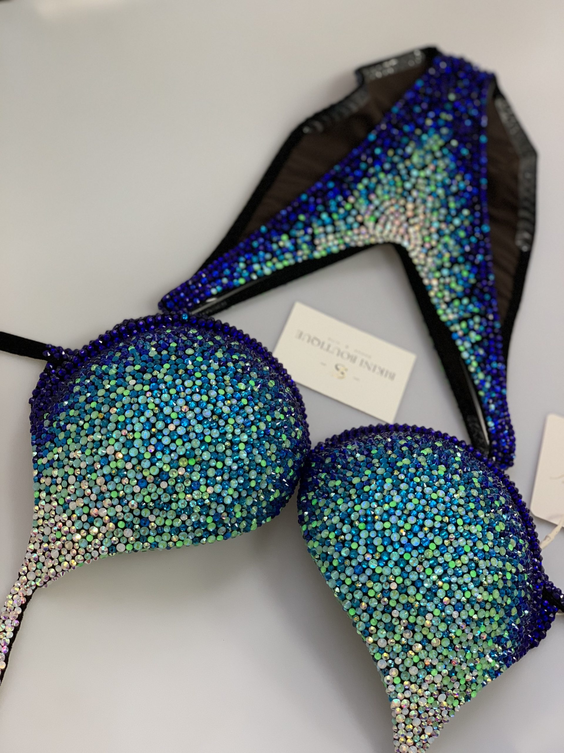 Black velvet base, incredibly beautiful design with the shades of refreshing and warm azure ocean!
