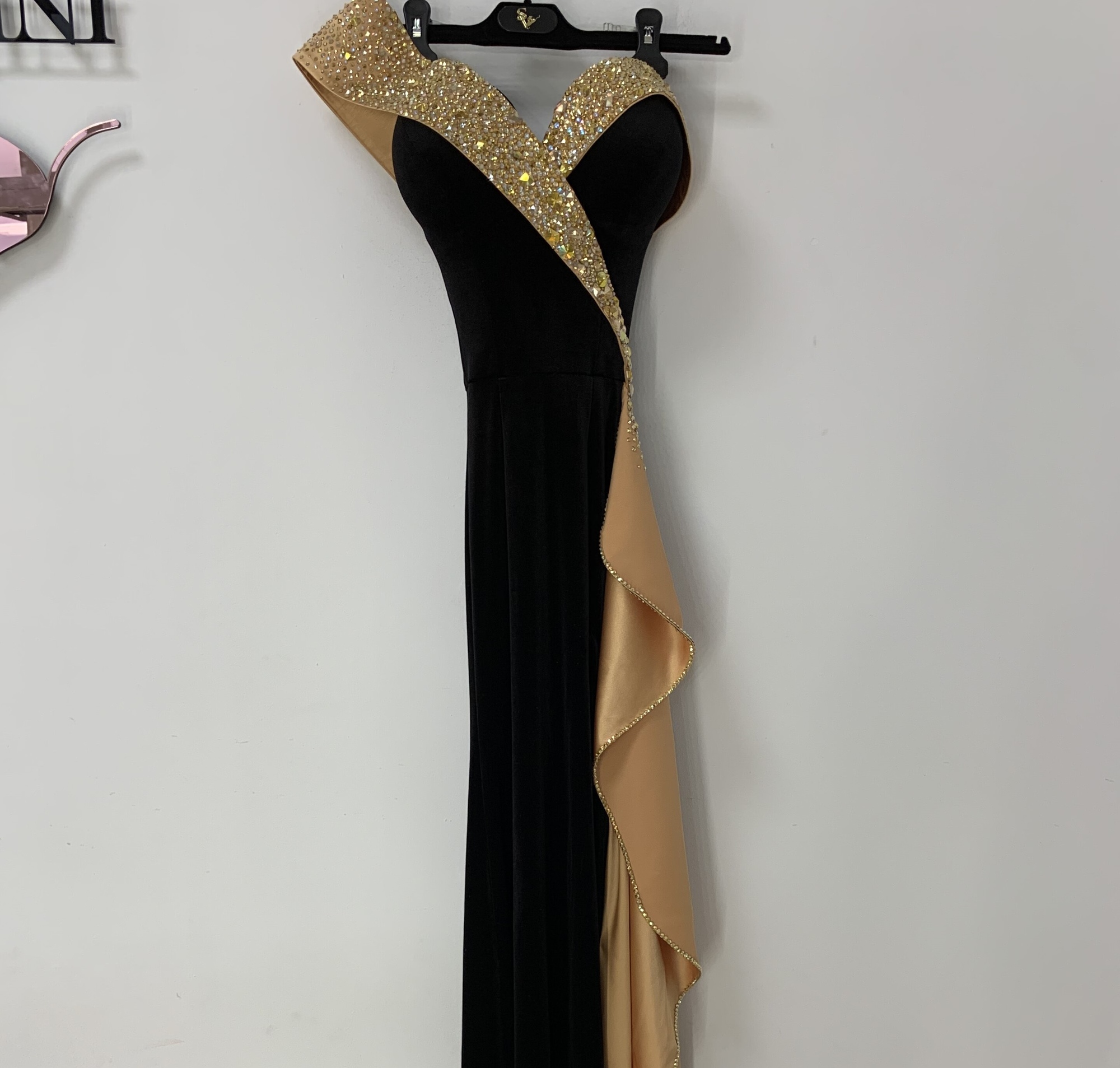 The classic black velvet dress was given new life by adding satin elements. RIchly decorated ribbons and playful flounces look perfect on seductive pretty girls!