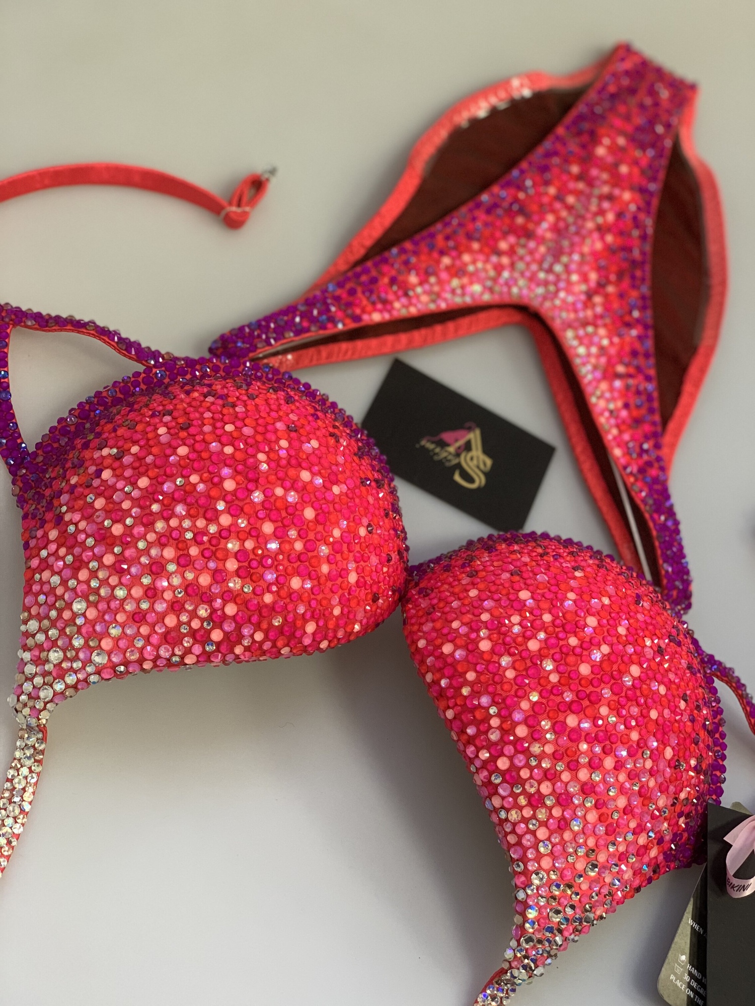 Delicate rhinestones on a bright base is new duet that perfectly emphasizes slim bronzed figure!