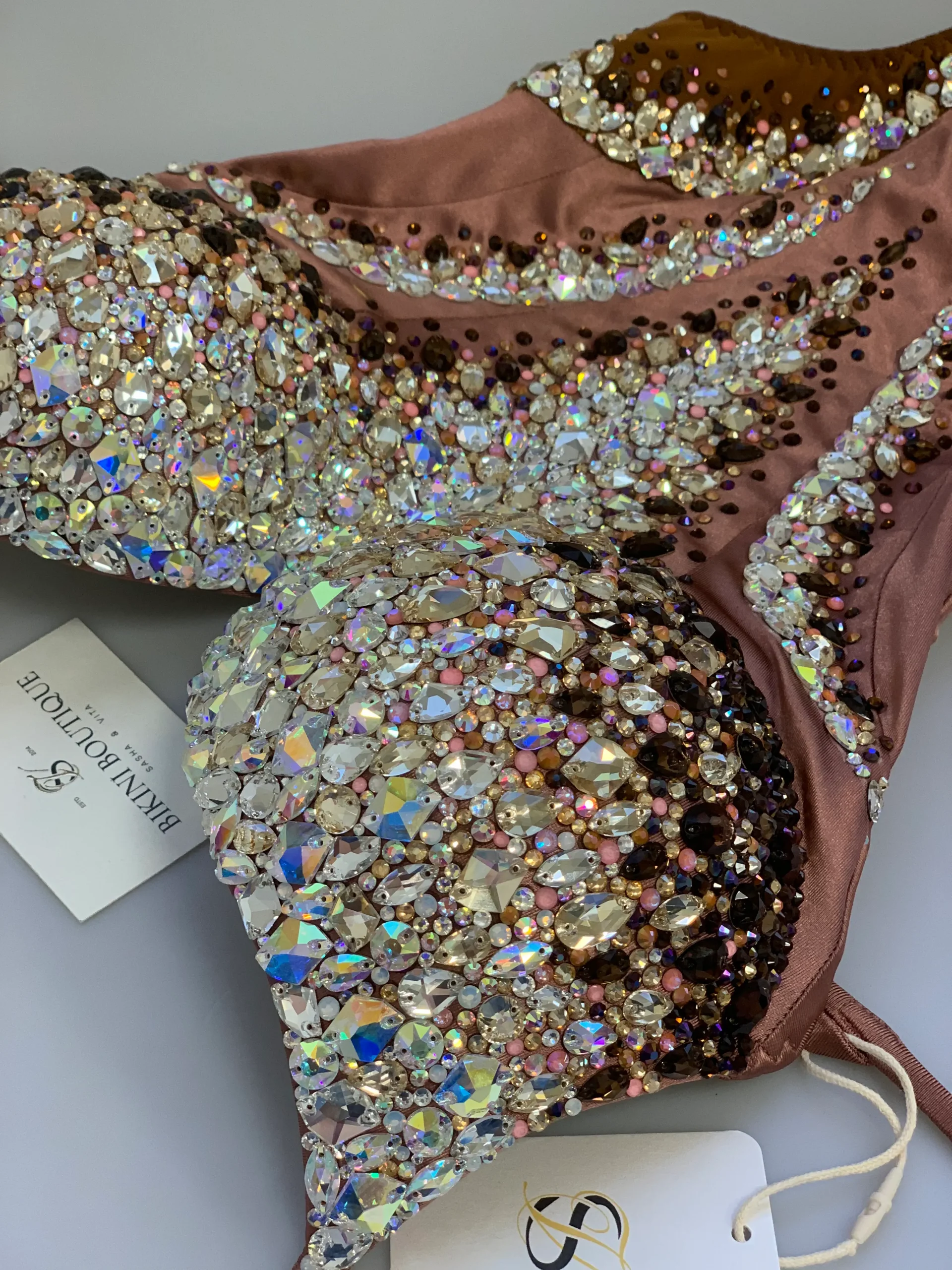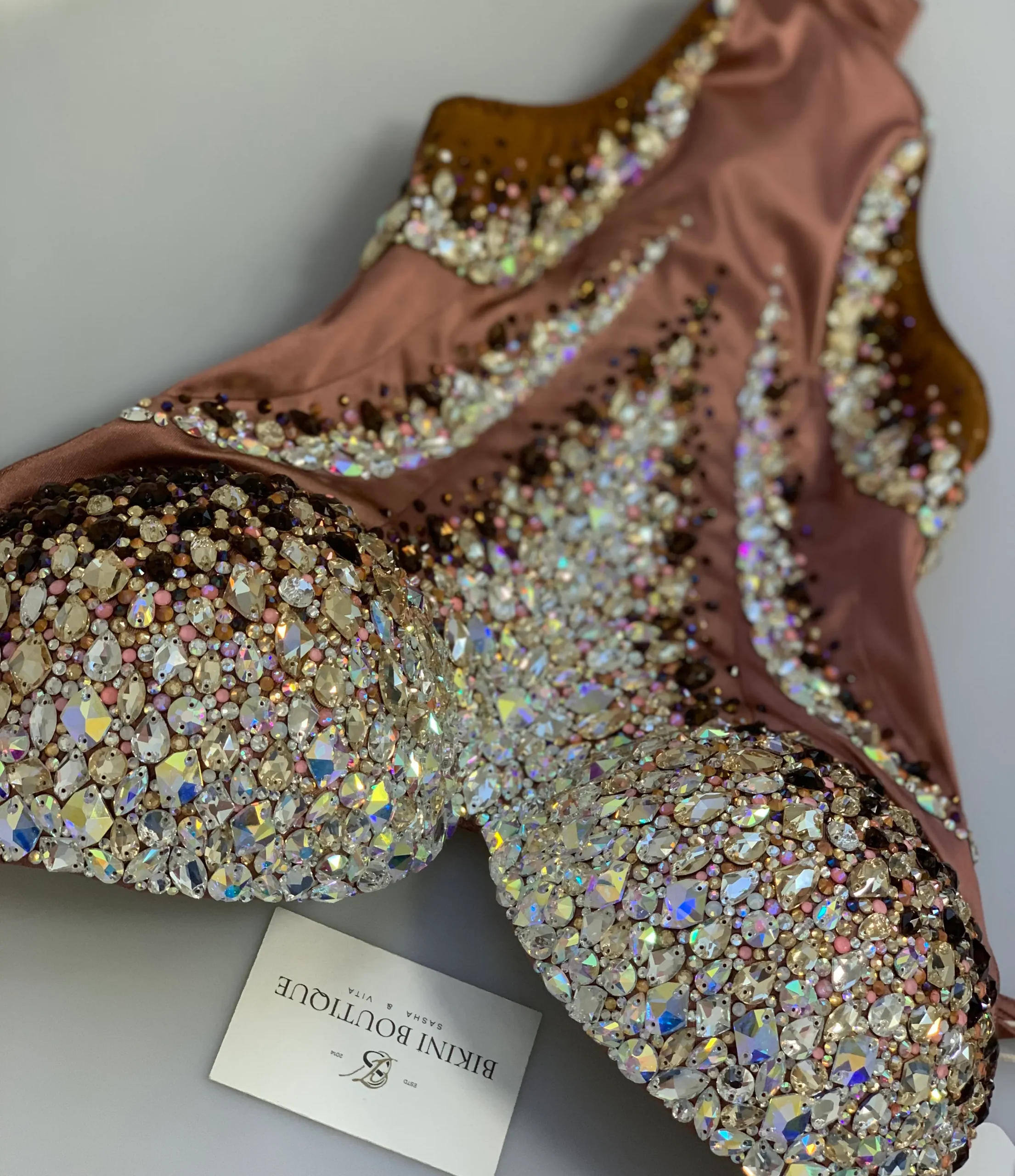The delicate design in color of roasted nuts and caramel amazes the imagination of sophisticated fashionistas. The rich decoration from rhinestones with diamond sparkle gives special expressiveness to pastel colors!