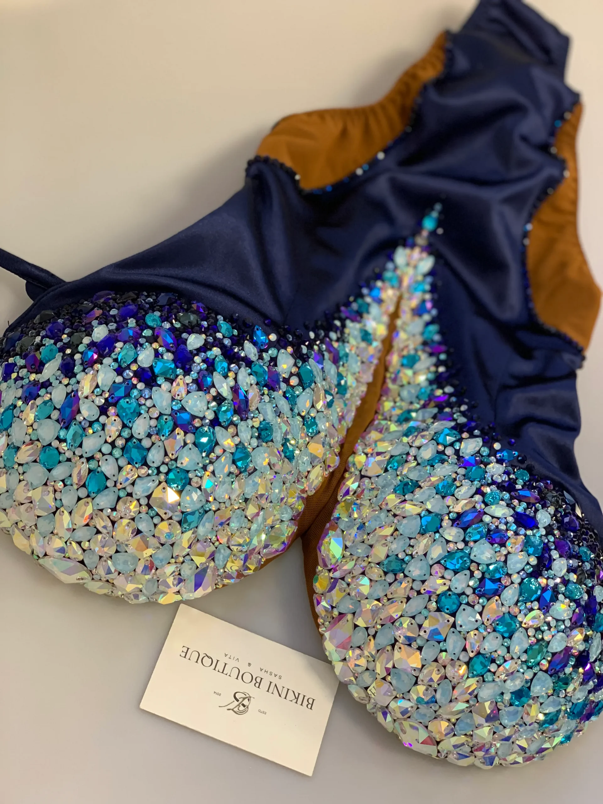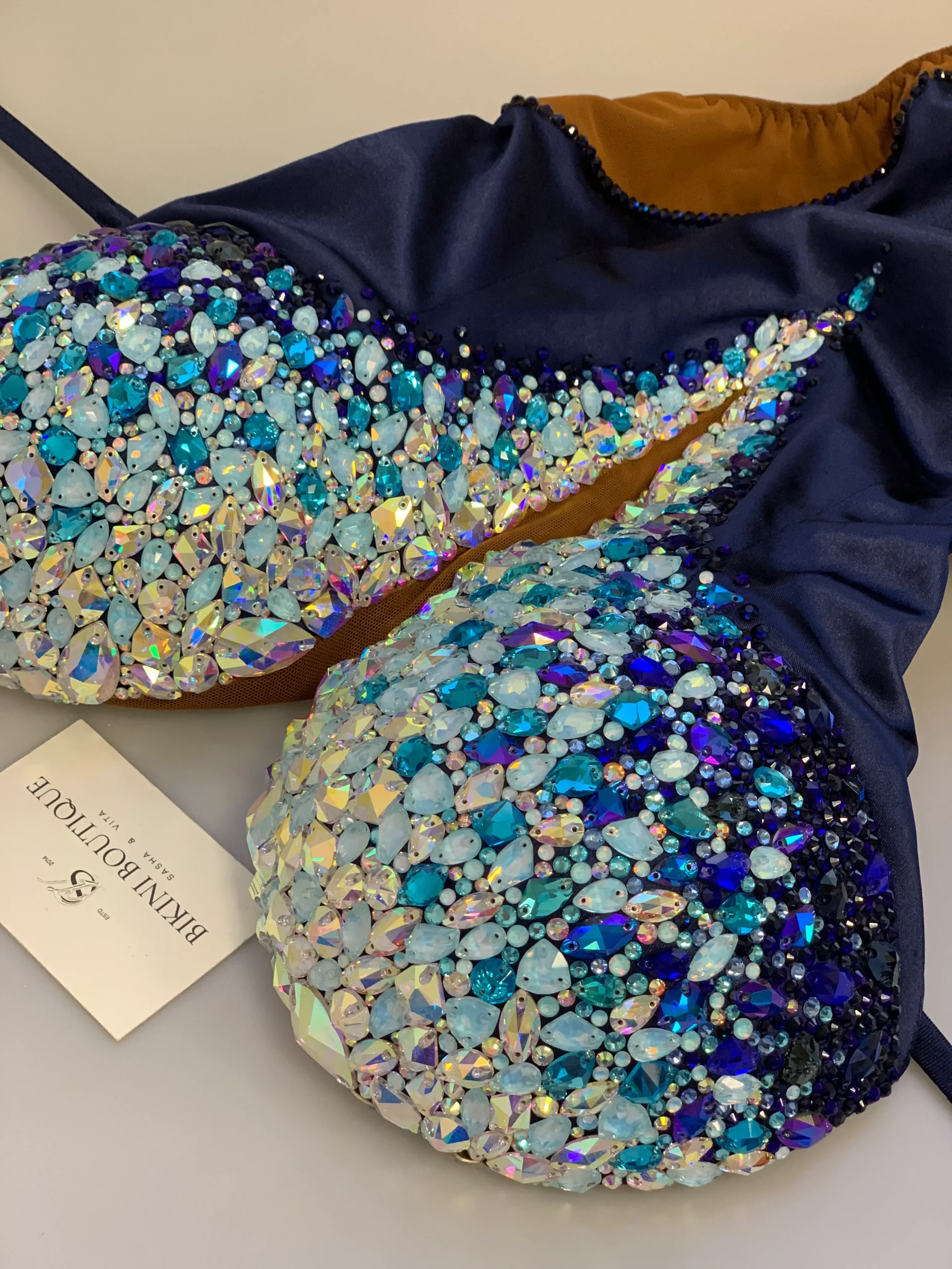 Magnificent beauty with a wide pallete of blue! Its’ shape will visually lengthen your legs and accentuate the bust! Admiring glances are guaranteed!