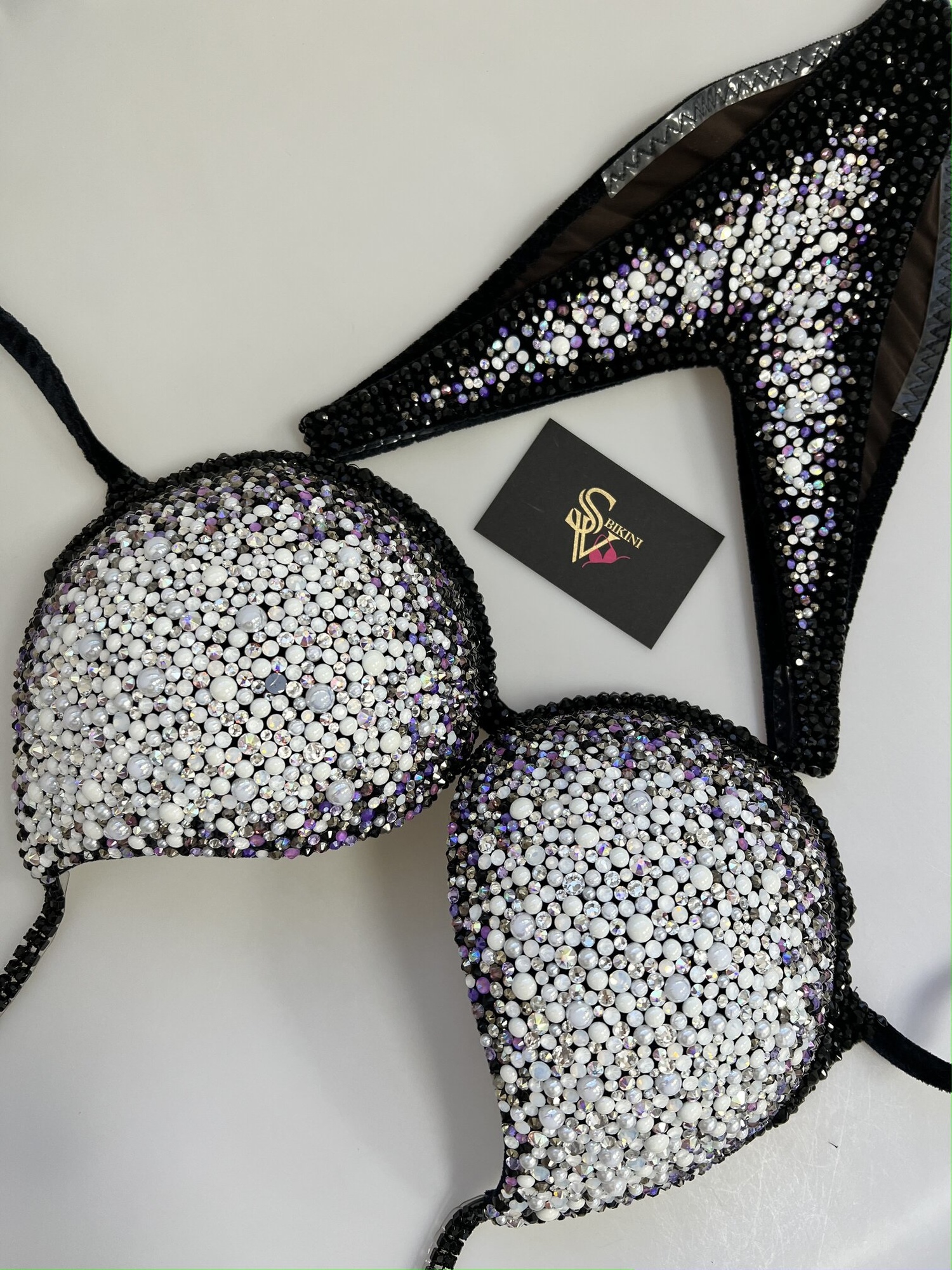 Rare design looks so expensive and sophisticated. “Snowy” pearls scattered on contrasting base are stylish and aristocratic. Be a graceful cat on stage!