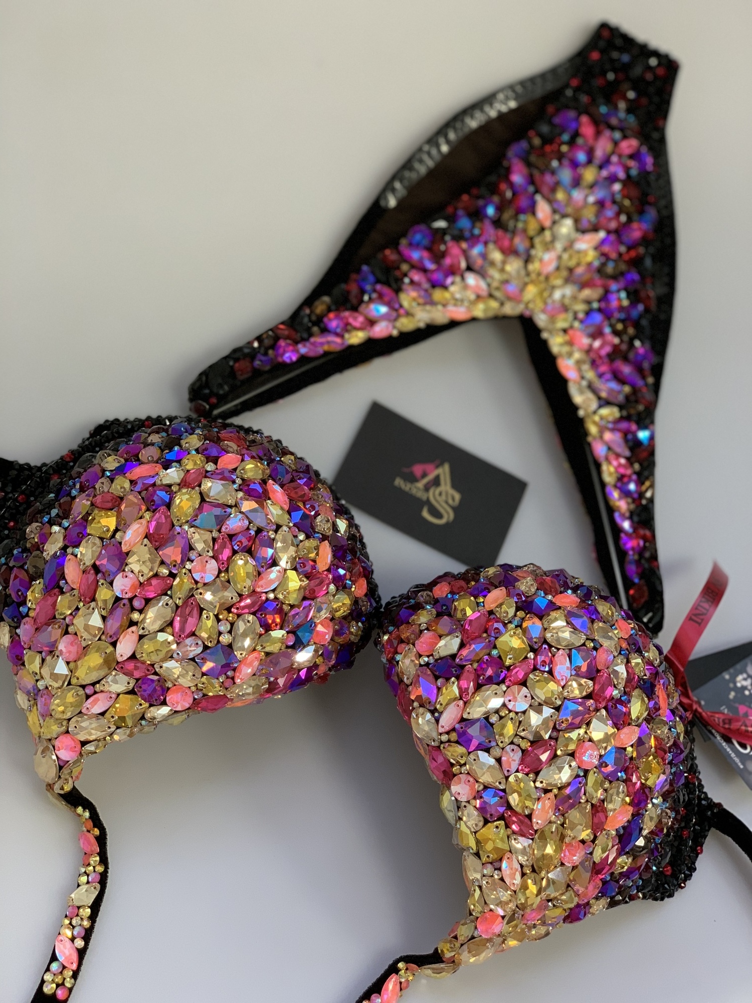 The chic and shine of large stones, a lot of gold and contrasting base mean that your competition will be held in the rays of glory. It`s spectacular look!